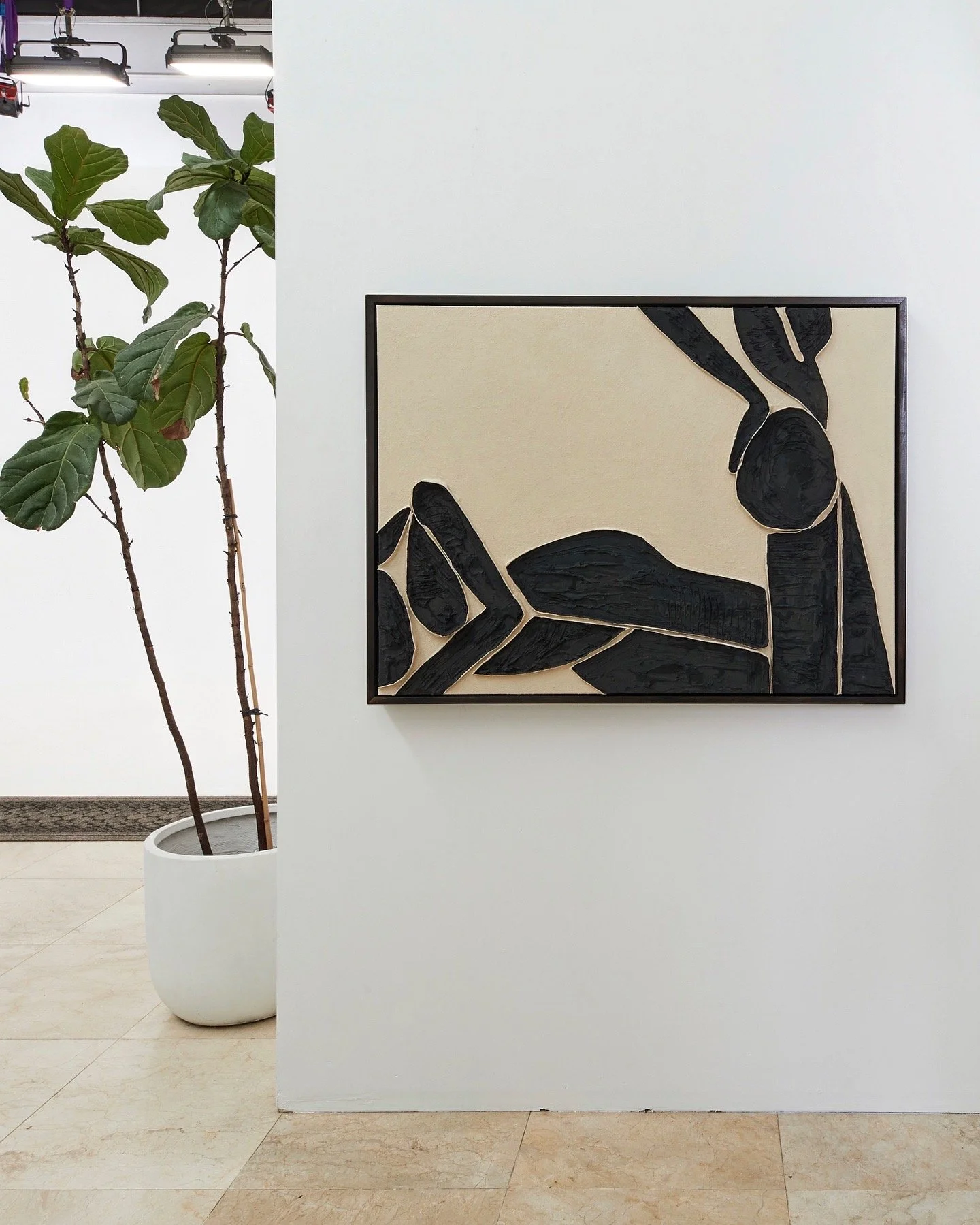 “This collection of paintings embodies a striking juxtaposition of strength and serenity. With a clear focus on bold, feminine energy, each piece commands attention through dominating shapes/silhouettes . At its heart, the collection blends powerful block colours with the tranquil elegance of marble-inspired tones. Some works feature rich, rough textures, adding a tactile depth that contrasts beautifully with the fluidity of the swirling marble effects. The result is a body of work designed to make a statement—captivating the viewer’s gaze while evoking an air of intrigue, inviting them to explore the quiet moments hidden within the bold strokes.”